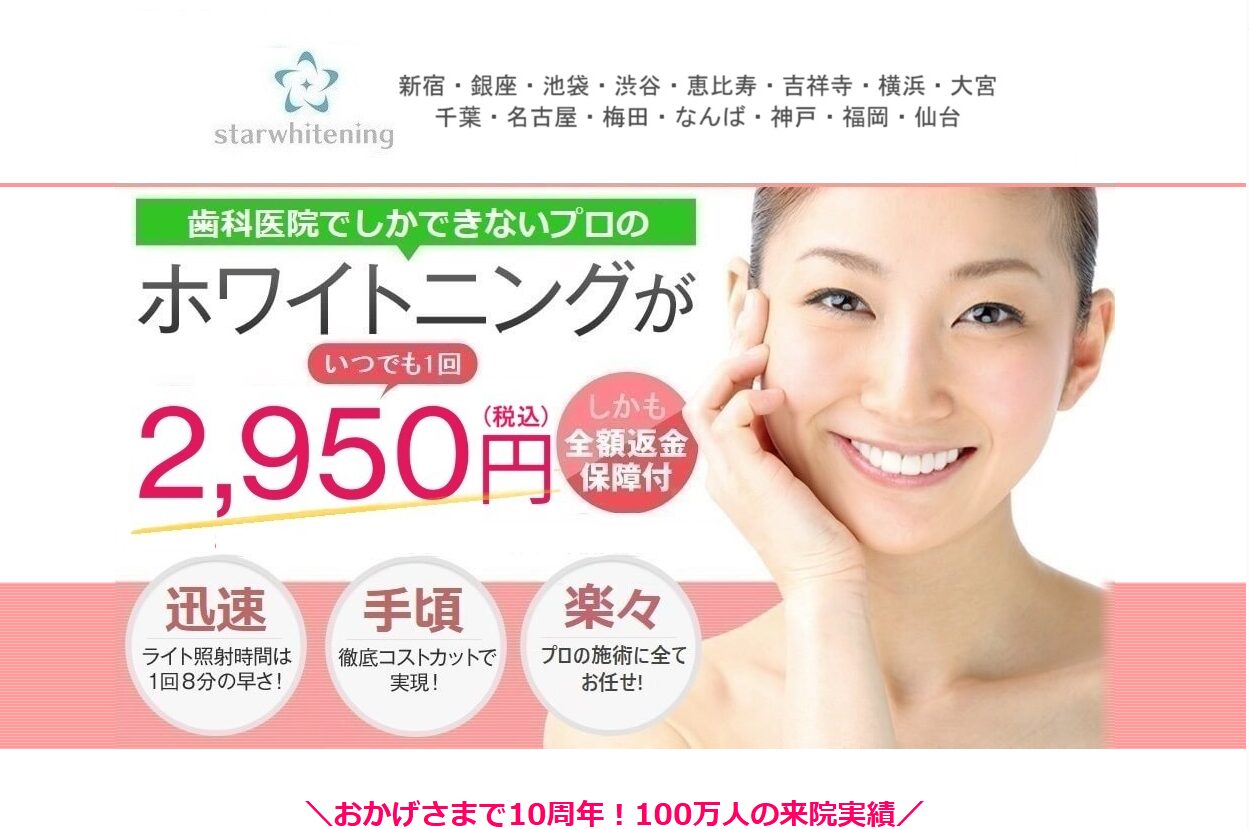 \Web予約は24時間受付中!/初回割引は今だけ 無料カウンセリングを予約する 全国40院以上!痛くない・しみないホワイトニングで笑顔に自信を ・初回2,750円(税込)から試せる安心価格n・歯科医監修の医療ホワイトニングで安全・確実n・痛みやしみを最小限に抑えた独自照射システムn・全国40院以上の通いやすい立地n・芸能人・モデルも多数来院の人気クリニック 商品名 スター ホワイトニング カテゴリ 未分類